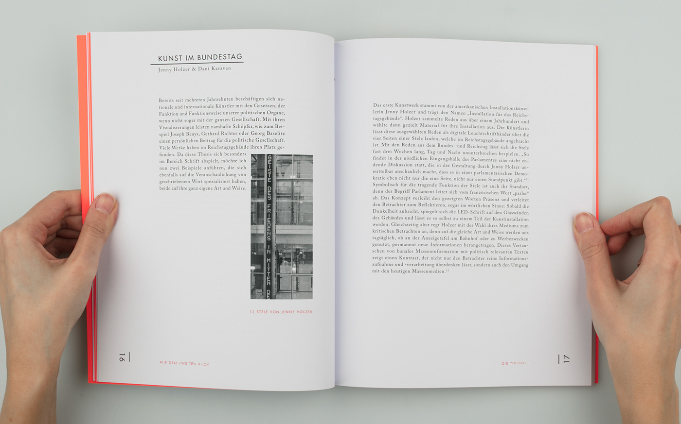 Jedes neue Kapitel wird durch eine neonfarbene Seite eröffnet.